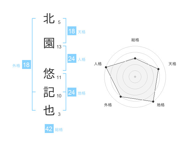 北園 悠記也さんの地格は24画の5点!
