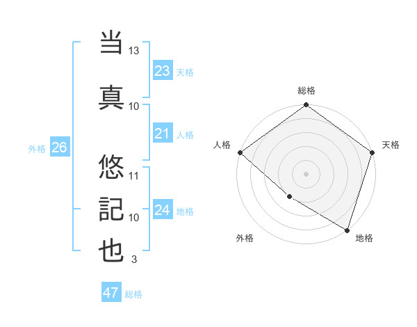 当真 悠記也さんの総格は47画の5点!