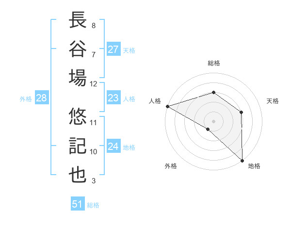 長谷場 悠記也さんを姓名の画数から五運を鑑定