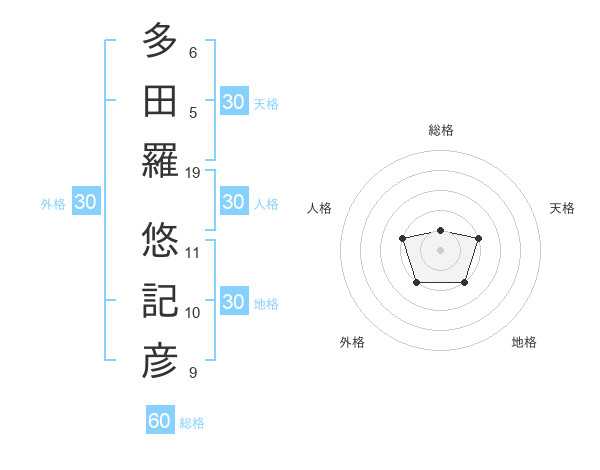 多田羅 悠記彦さんの天格は30画の2点!