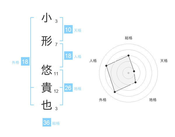 小形 悠貴也さんを姓名の画数から五運を鑑定