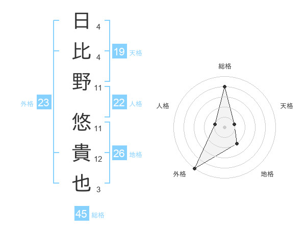 日比野 悠貴也さんの外格は23画の5点!