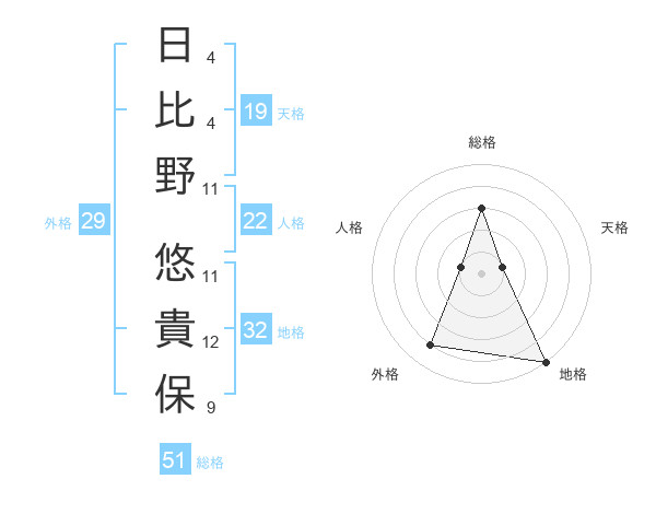 日比野 悠貴保さんを姓名の画数から五運を鑑定