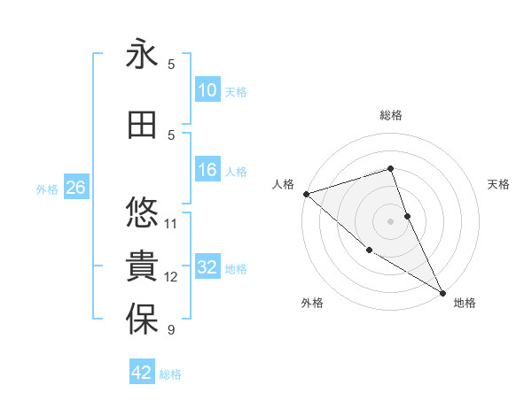 永田 悠貴保さんを姓名の画数から五運を鑑定