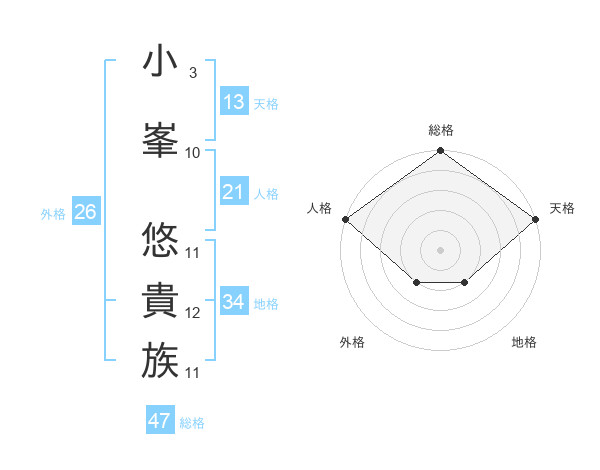 小峯 悠貴族さんを姓名の画数から五運を鑑定