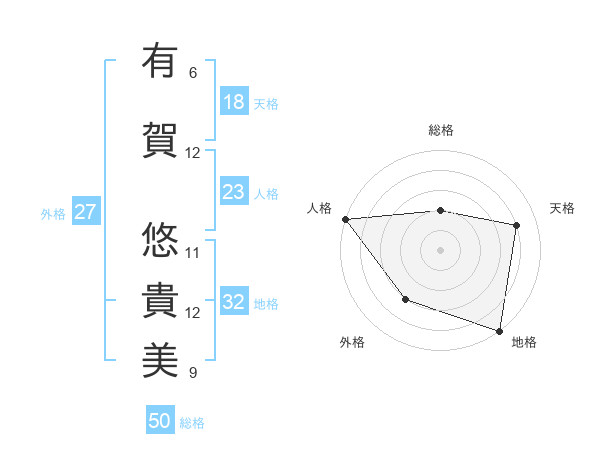 有賀 悠貴美さんの総格は50画の2点