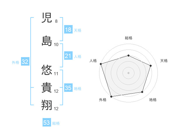 児島 悠貴翔さんを姓名の画数から五運を鑑定