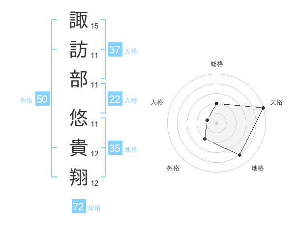 諏訪部 悠貴翔さんの天格は37画の5点!