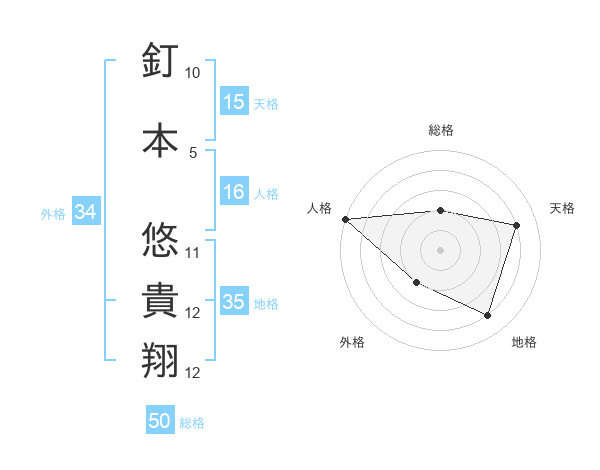 釘本 悠貴翔さんを姓名の画数から五運を鑑定