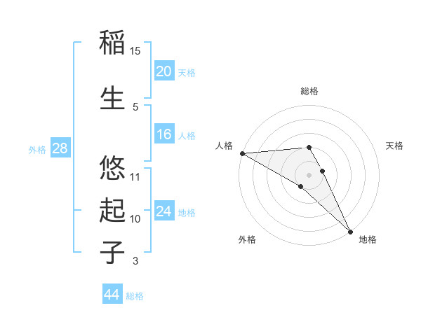 稲生 悠起子さんを姓名の画数から五運を鑑定