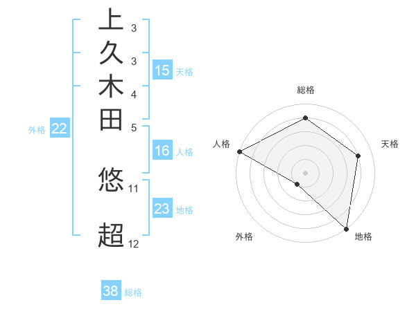 上久木田 悠超さんを姓名の画数から五運を鑑定