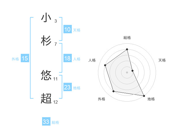 小杉 悠超さんの地格は23画の5点!