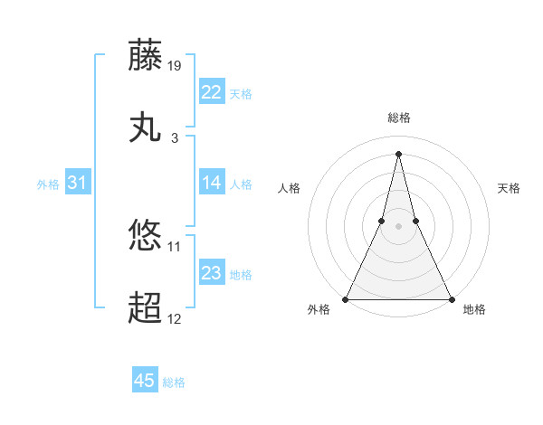 藤丸 悠超さんを姓名の画数から五運を鑑定