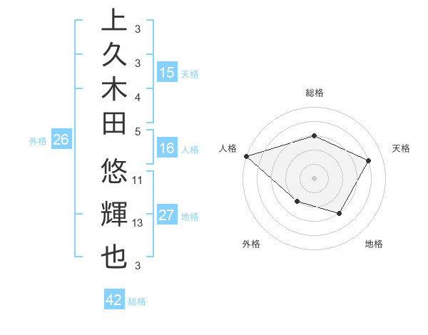 上久木田 悠輝也さんを姓名の画数から五運を鑑定