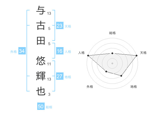 与古田 悠輝也さんを姓名の画数から五運を鑑定