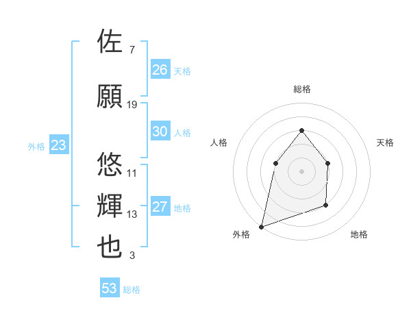 佐願 悠輝也さんを姓名の画数から五運を鑑定