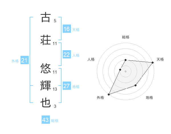 古荘 悠輝也さんを姓名の画数から五運を鑑定