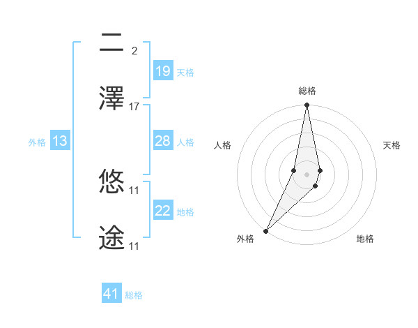 二澤 悠途さんを姓名の画数から五運を鑑定