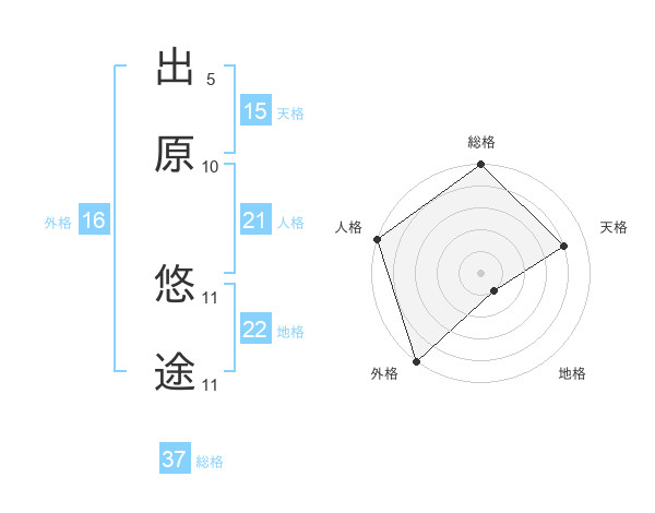 出原 悠途さんの総格は37画の5点!
