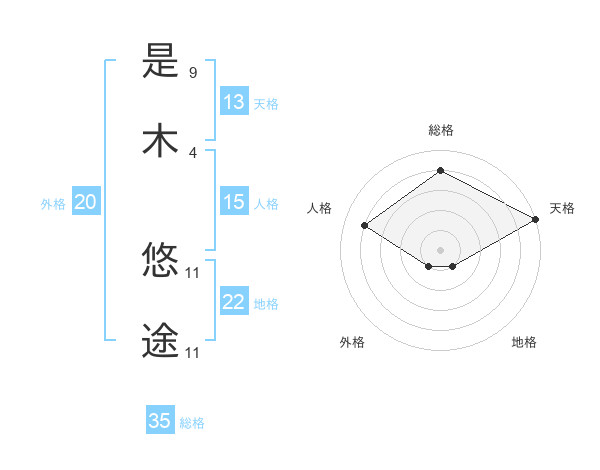 是木 悠途さんの天格は13画の5点!