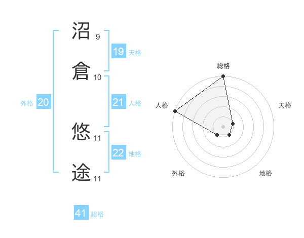 沼倉 悠途さんの総格は41画の5点!