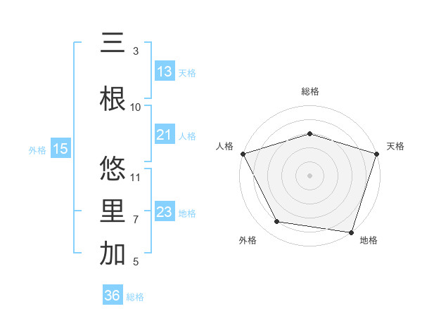 三根 悠里加さんを姓名の画数から五運を鑑定