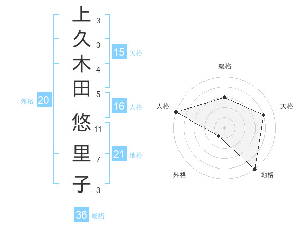 上久木田 悠里子さんの外格は20画の1点!