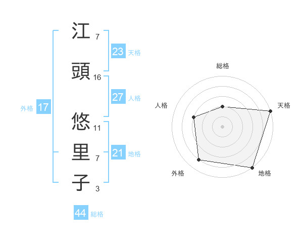 江頭 悠里子さんを姓名の画数から五運を鑑定