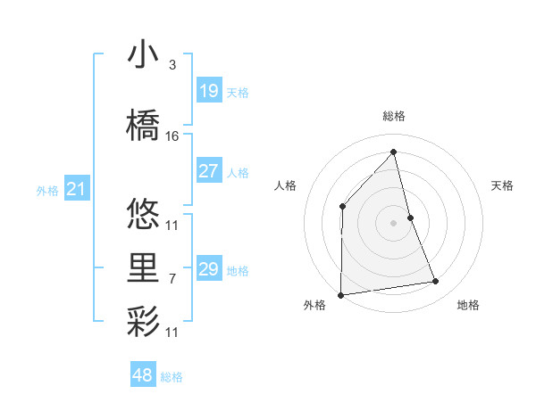 小橋 悠里彩さんを姓名の画数から五運を鑑定