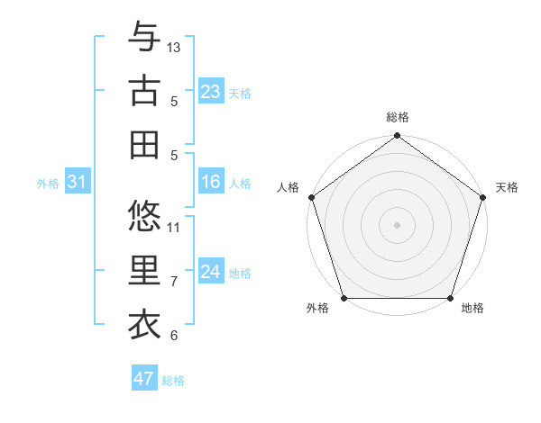 与古田 悠里衣さんの総格は47画の5点!