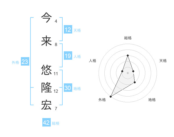 今来 悠隆宏さんの外格は23画の5点!
