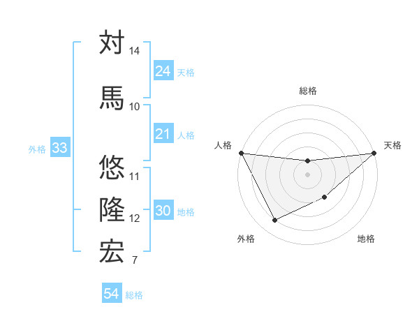 対馬 悠隆宏さんの天格は24画の5点!