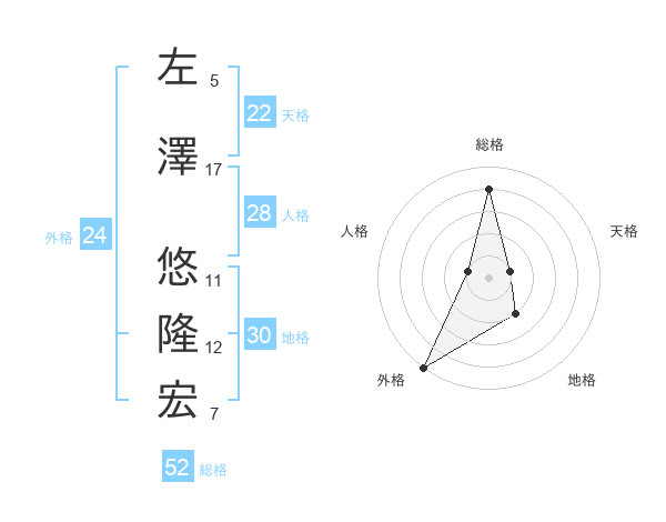 左澤 悠隆宏さんの総格は52画の4点!