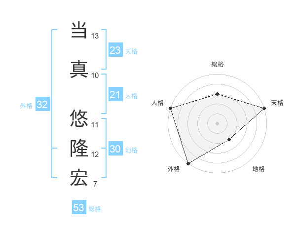 当真 悠隆宏さんを姓名の画数から五運を鑑定