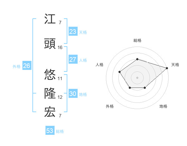 江頭 悠隆宏さんを姓名の画数から五運を鑑定