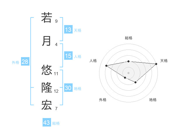 若月 悠隆宏さんを姓名の画数から五運を鑑定