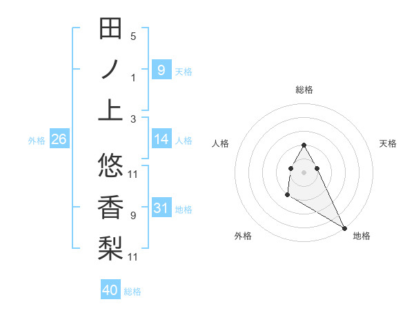 田ノ上 悠香梨さんを姓名の画数から五運を鑑定