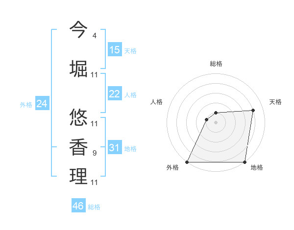 今堀 悠香理さんを姓名の画数から五運を鑑定