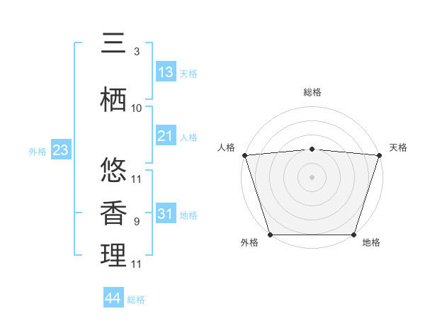 三栖 悠香理さんの天格は13画の5点!