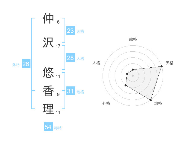 仲沢 悠香理さんを姓名の画数から五運を鑑定