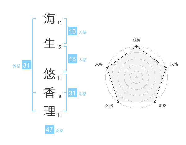 海生 悠香理さんの総格は47画の5点!