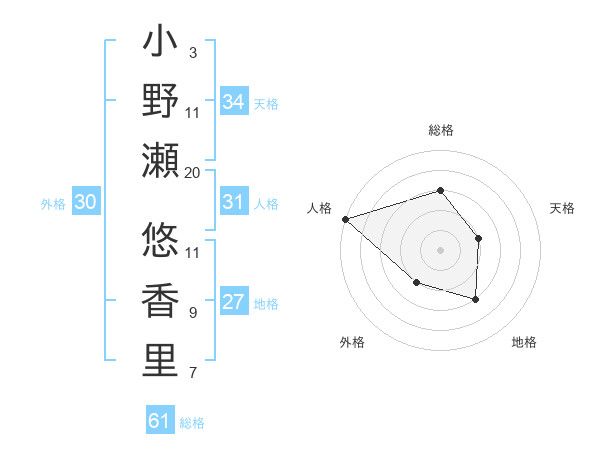 小野瀬 悠香里さんを姓名の画数から五運を鑑定