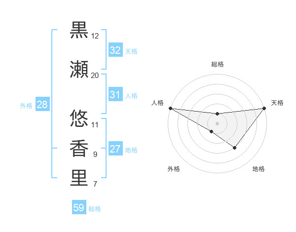 黒瀬 悠香里さんを姓名の画数から五運を鑑定
