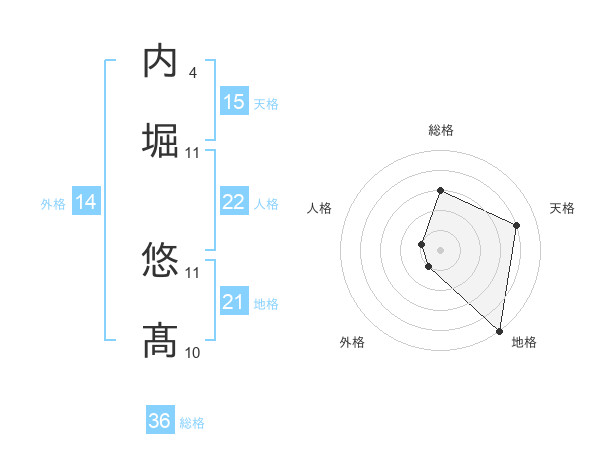 内堀 悠髙さんの地格は21画の5点!