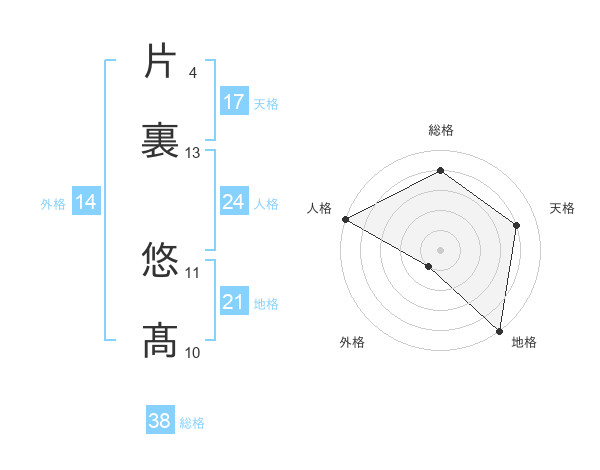 片裏 悠髙さんの総格は38画の4点!