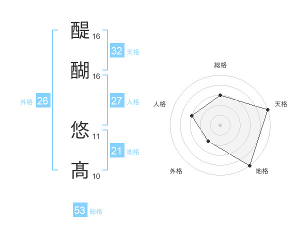 醍醐 悠髙さんの総格は53画の3点!