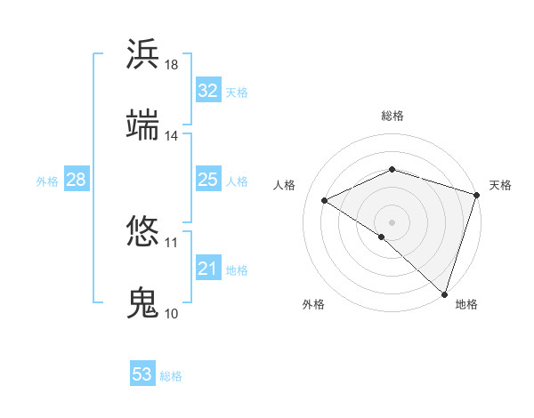 浜端 悠鬼さんの天格は32画の5点!