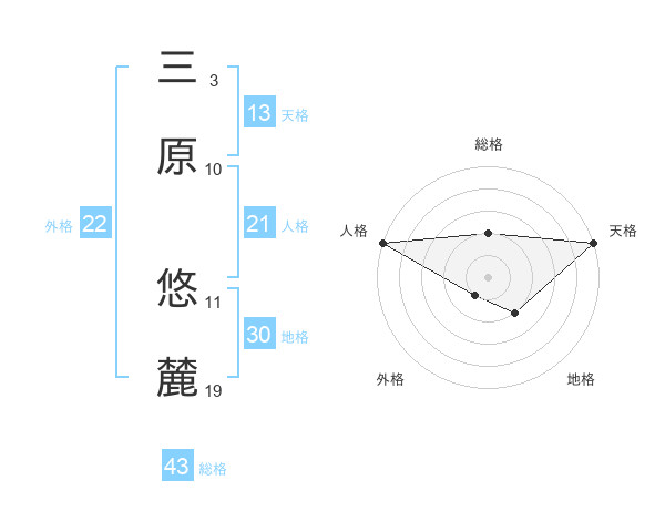 三原 悠麓さんの天格は13画の5点!