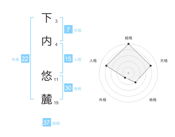 下内 悠麓さんの総格は37画の5点!
