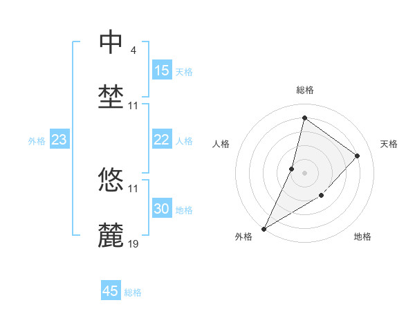 中埜 悠麓さんの総格は45画の4点!